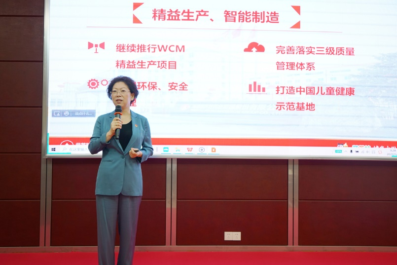 刘景萍董事长引用席大大总书记在2022年博鳌亚洲论坛上的重要讲话勉励全体与会人员,在海南自贸港建设的机遇期,认真学习贯彻落实省第八次党代会精神,坚持党建引领企业发展,将贝斯特药业集团打造成中国儿童健康领军企业。