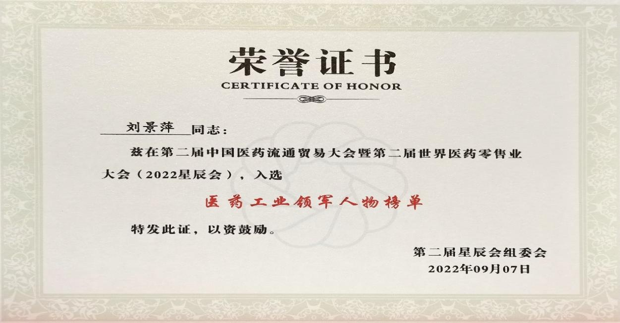 在本次开幕式上,发布了“医药工业领军人物”、“医药零售领军人物”榜单,贝斯特药业集团刘景萍董事长凭借在儿药领域多年的努力探索和对行业的杰出贡献,荣获“医药工业领军人物”称号。