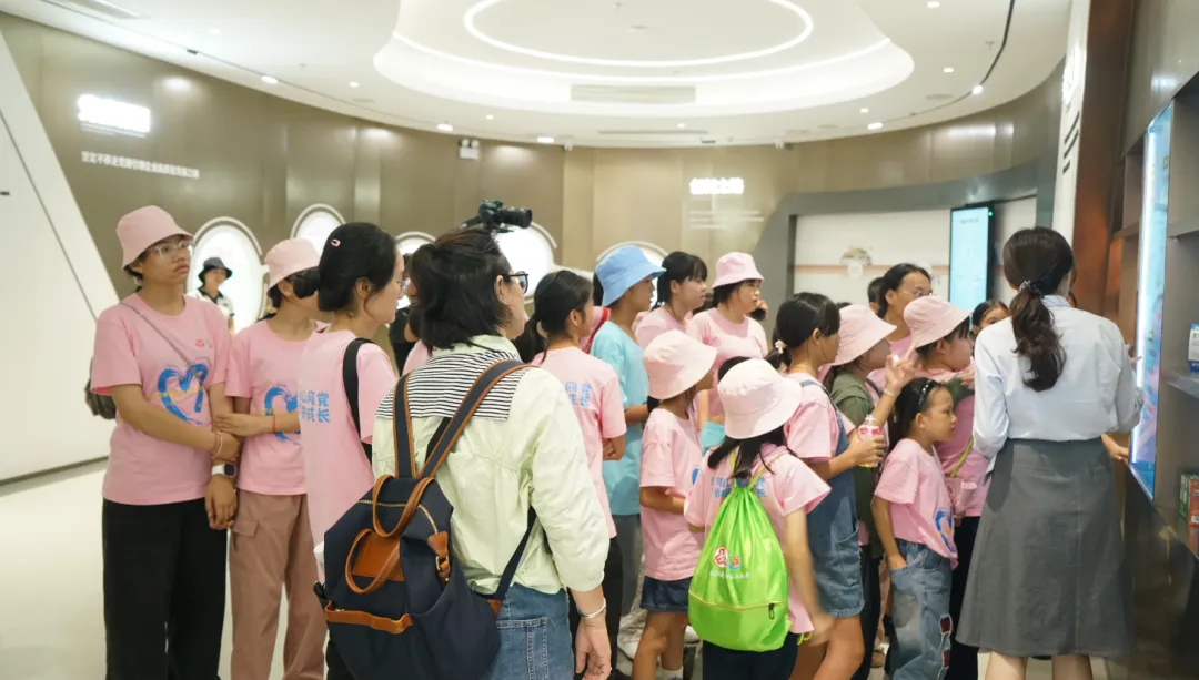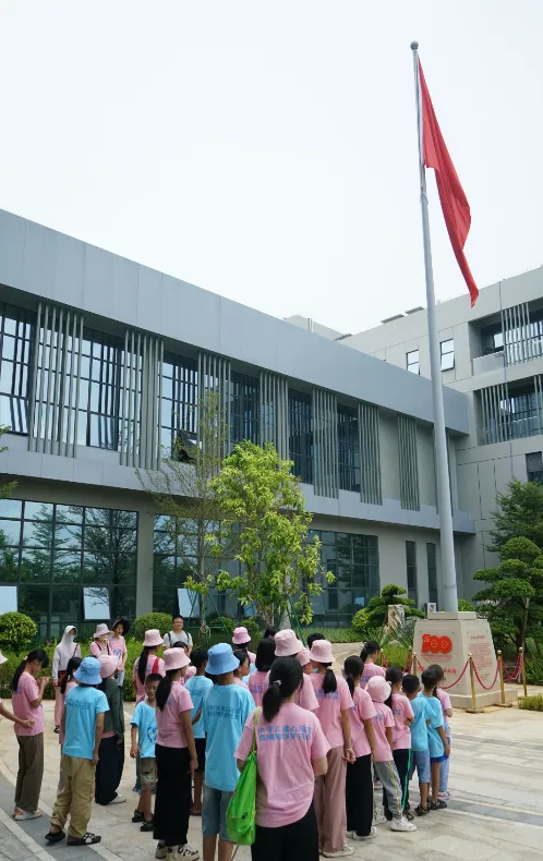 紧接着,孩子们来到了建党百年庆典红旗——070号红旗前。讲解员讲述了贝斯特药业集团与庆典红旗的深厚渊源。孩子们听得津津有味,眼中闪烁着对党和国家的热爱与敬仰。